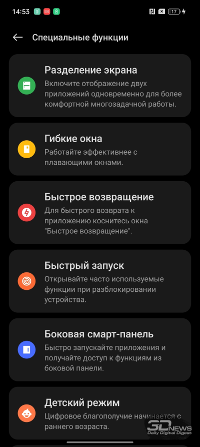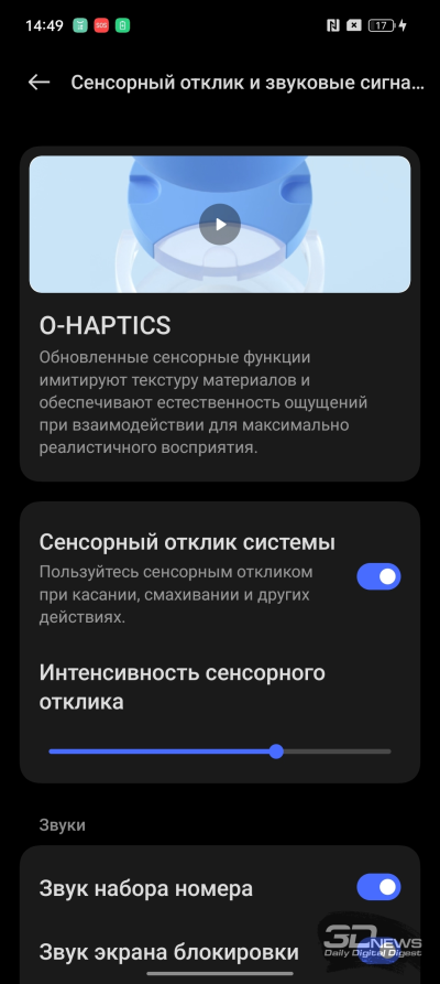 Построен realme 11 Pro+ на базе Android 13 с оболочкой realme UI 4.0. Про эту оболочку я уже рассказывал пару раз в последних обзорах смартфонов realme. Повторюсь: по сравнению с прошлой realme UI заново отрисованы основные значки, переработаны центр быстрых настроек и системные настройки (теперь разделенные на «карточки», как во многих других оболочках). Изменен режим отображения информации на заблокированном экране, куда теперь можно добавить быстрое управление плеером, появилась возможность создания больших папок, ну и переписаны виджеты — им в целом отведена более серьезная роль. Работает система очень быстро – и как и на других старших realme. Смартфон отдельно радует повышенной тактильностью — здесь очень качественный вибромоторчик, которого не ждешь в аппарате среднего класса.