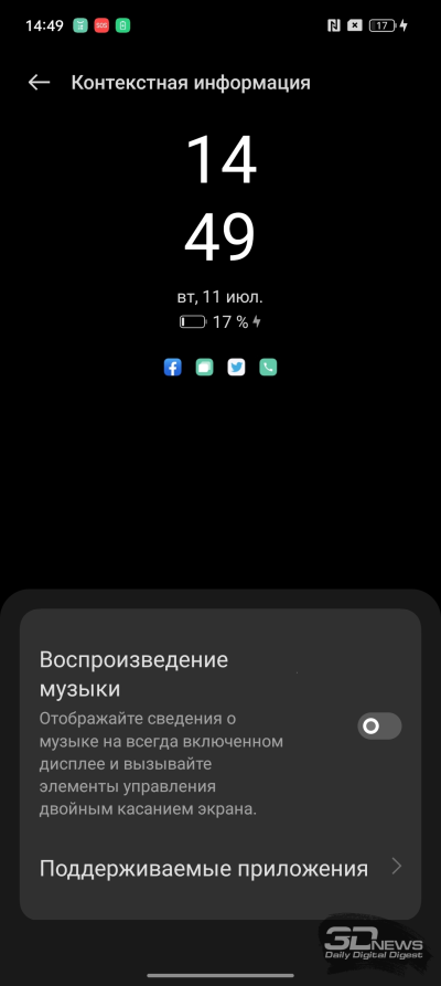 В realme 11 Pro+ используются стереодинамики — в паре с выделенным и расположенным на нижней грани основным работает разговорный, но его звучание выводится в том числе и на верхнюю грань (для этого предусмотрена отдельная решетка), отчего улучшается позиционирование звука. Оба они приличного уровня, хотя звук, на мой вкус, чуть глуховат. Мини-джека нет, но есть поддержка ключевых профилей Bluetooth (LDAC, aptX, aptX HD). Имеется и поддержка Dolby Atmos, которая отсутствовала, к слову, в realme 10 Pro+.