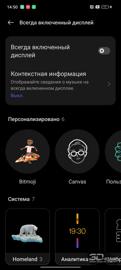 В настройках дисплея можно поменять не только частоту разверкти, но и размер и тип шрифтов. Также предлагается отрегулировать систему отображения часов и значков уведомлений на заблокированном смартфоне и установить темную или светлую тему интерфейса (или настроить таймер их включения). Имеется опция программного расширения цветовой гаммы в видео, которая не оказывает особенного влияния на картинку. Цветопередача дисплея регулируется: есть две основные предустановки («Яркие цвета» и «Естественный»), а также «режим Pro» c подпунктами «Кинематографические» и «Великолепно». Доступна ручная регулировка цветовой температуры для каждого режима. Я измерил цветопередачу экрана realme 11 Pro+ в режиме «Яркие цвета», который используется по умолчанию, а также в режимах «Естественный» и Pro («Кинематографические» цвета). Цветовая температура не изменялась.