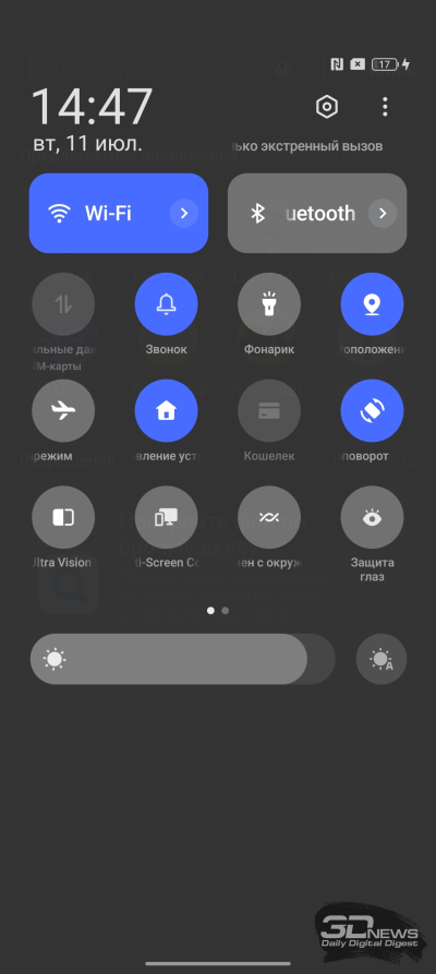 Главные ее достоинства остались теми же. Частота обновления вплоть до 120 Гц, но без возможности гибкого изменения шагом до 1 Гц – только быстрое переключение между 60, 90 и 120 Гц. Причем не во всех приложениях — в играх повышенная частота не поддерживается. Сенсорный слой с частотой опроса 360 Гц. Ну и димминг с частотой до 2160 Гц – видимого мерцания при низкой яркости не будет, даже самые чувствительные к ШИМ пользователи могут расслабиться и не искать смартфон с ЖК-дисплеем.