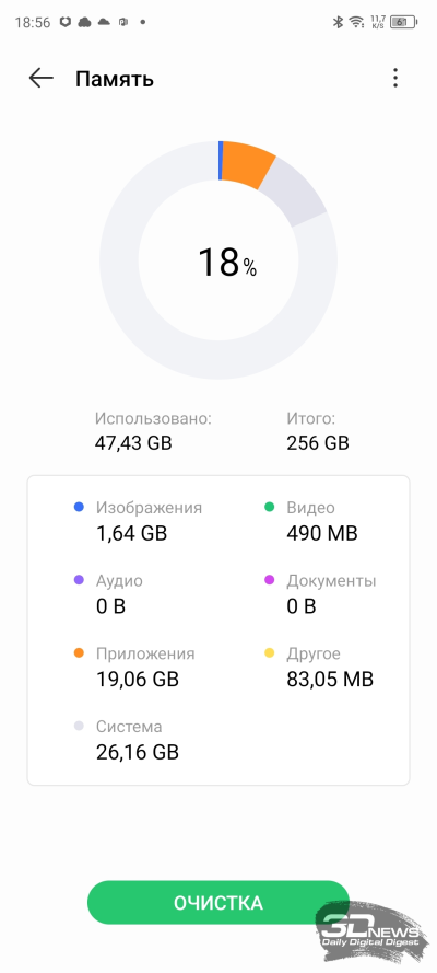 Экранный сканер отпечатков получил оптический сенсор – он срабатывает быстро и с минимальным процентом брака (меньше, чем у актуальных сканеров в боковых клавишах). Расположен он чуть низковато, на мой взгляд, но перехватывать смартфон в руке, чтобы дотянуться до него большим пальцем, мне не приходилось. Не хватает, как всегда, тактильной отдачи при срабатывании. Добавим про дублирующую систему индентификации пользователя по лицу – при помощи фронтальной камеры без дополнительных сенсоров.