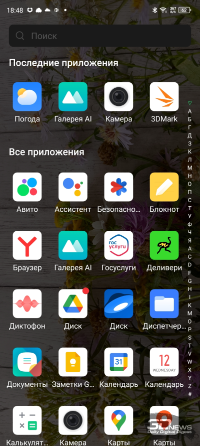 В остальном панель тоже неплохая: достойные углы обзора, нет PenTile, визуально картинка воспринимается хорошо (по крайней мере нет чрезмерно холодных цветов, как на некоторых предыдущих смартфонах бренда). Добавлю, что регулировать частоту обновления дисплея можно гибко – выставить вручную 60, 90 или 120 Гц либо предоставить смартфону самому решать, что в той или иной ситуации более уместно. В играх, к сожалению, повышенная частота не поддерживается.