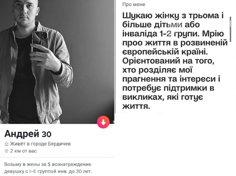 К примеру, на днях некий «Андрей из Житомира» нашел таким способом свою «возлюбленную». Стоит за него порадоваться, потому что теперь он не попадет под мобилизацию.