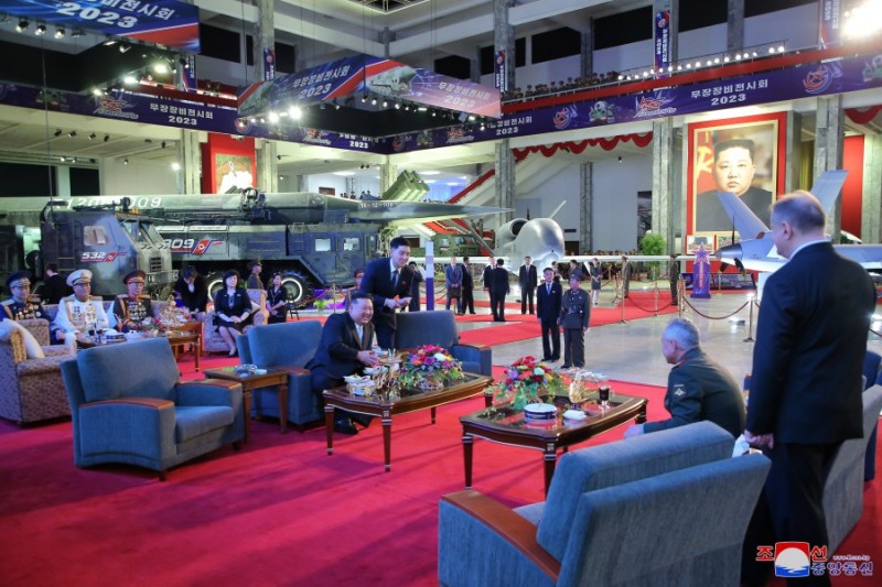 Кроме того, Ким Чен Ын во время посещения «Выставки вооружений — 2023» показал Шойгу новейшие беспилотники и межконтинентальные баллистические ракеты (МБР). Об этом свидетельствуют фотографии, опубликованные Центральным телеграфным агентством. На снимках видны как минимум два беспилотных летательных аппарата, которые ранее нигде не представляли. Они имеют внешний дизайн, схожий с американским аппаратом MQ-9 Reaper и разведывательным беспилотником Global Hawk. Также на фотографиях запечатлены межконтинентальная баллистическая ракета «Хвасон-17» и новейшая МБР «Хвасон-18» с двигателем на твердом топливе, которую КНДР, как она сообщала, испытывала в апреле и июле текущего года. Сами ракеты установлены на многоосные мобильные пусковые установки и выкрашены в камуфляжную окраску.