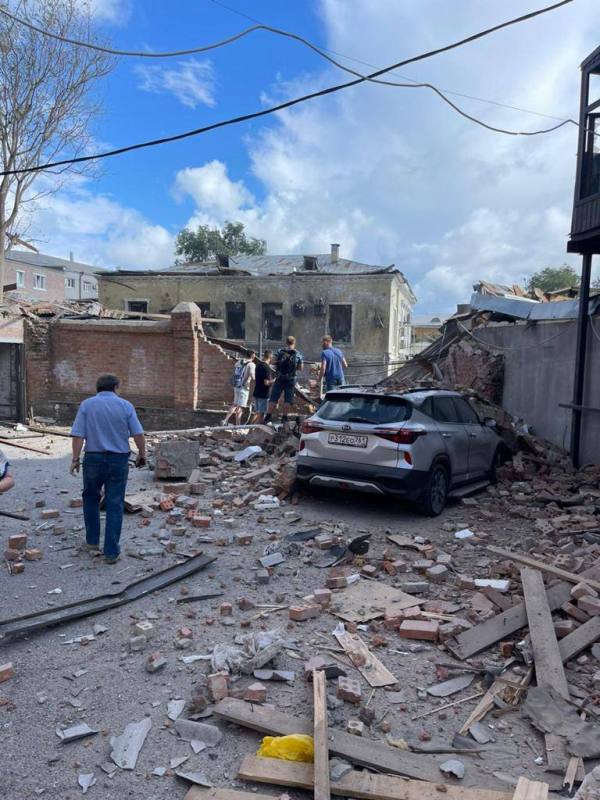 В центре Таганрога по адресу пер. Лермонтовский, 22, у кафе «Чехов сад» взорвалась предположительно ракета. На месте работают спасатели. Погибших нет.