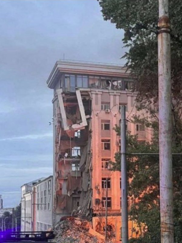 Судя по разрушению здания, многоэтажный корпус СБУ уничтожен.