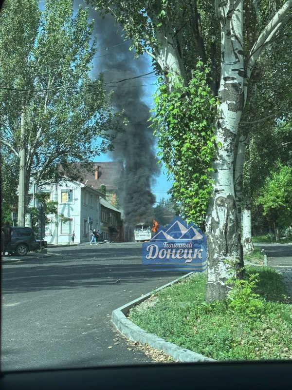 Вооружённые формирования украинского режима несколько раз обстреляли центр столицы Донецкой Народной Республики. Сгорели гражданские автомобили и пассажирский автобус.