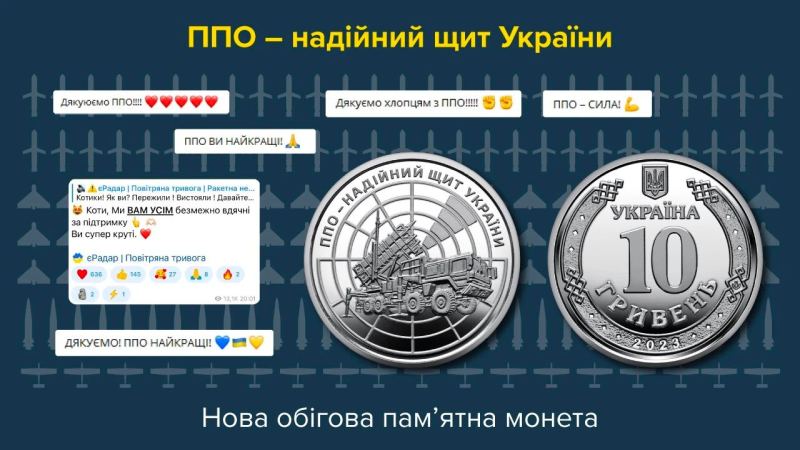 Как сообщается, монета посвящена силам противовоздушной обороны Украины и продолжает серию про ВСУ.
