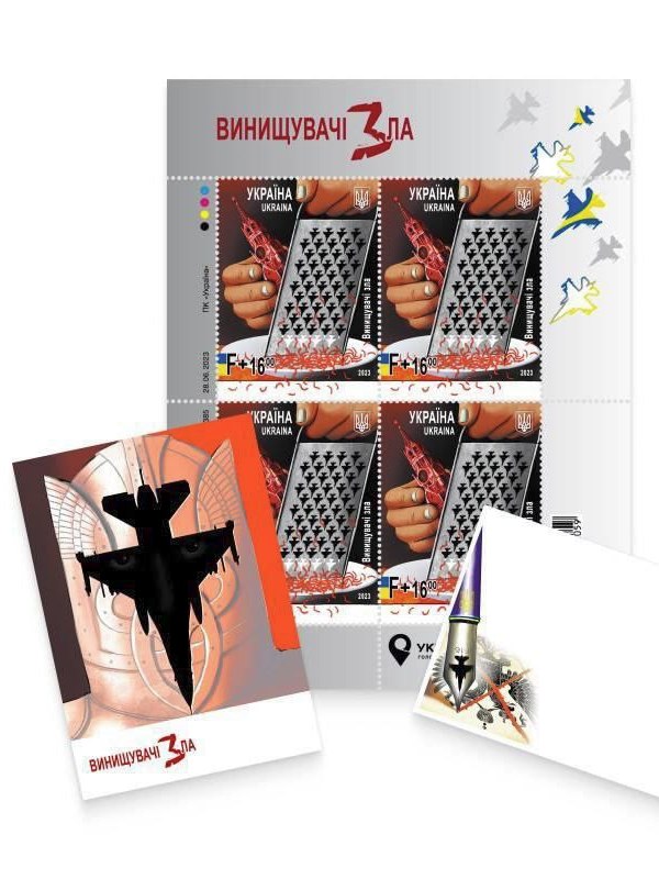 Одновременно «Укрпошта» представила новую почтовую марку с истребителем F-16. Марка называется «Истребители зла».