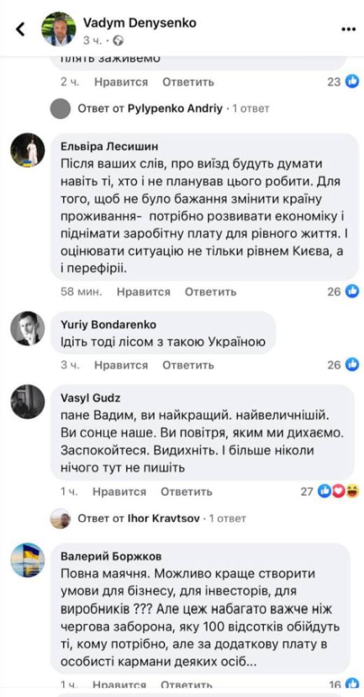 Идея Денисенко вызвала бурное обсуждение в сети. Ему указали, что он идиот, и напомнили, что это противоречит политике киевского режима — стремление в ЕС и НАТО, безвиз.