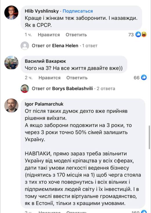 «Одним махом открыть границы, как это было до 24.02.22 — это значит потерять плюс миллион. Сейчас за границей около 7 млн. человек, вернется половина. Все те, кто пишет о комплексных мерах по возвращению — лукавят. Никаких реальных комплексных мер нет и не будет. К сожалению», — написал он.