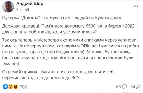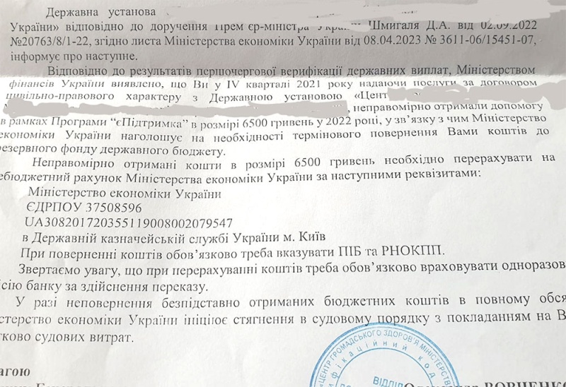 Украинцы выкладывают копии «писем счастья» с призывом срочно отдать государству полученные 6,5 тыс. грн помощи.