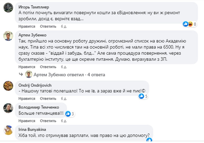 А также задаются вопросом, что делать тем, которые перечислили эти средства на ВСУ, и допускают, что таким способом отнимут и компенсацию за разрушенное жилье, а, возможно, и выплаты внутренним переселенцам.