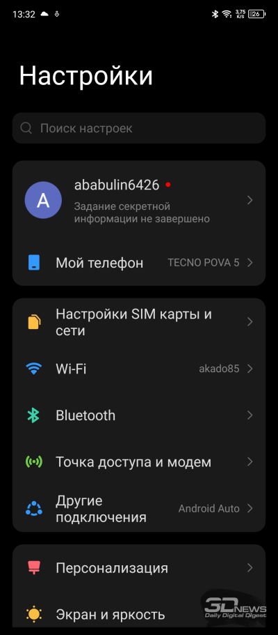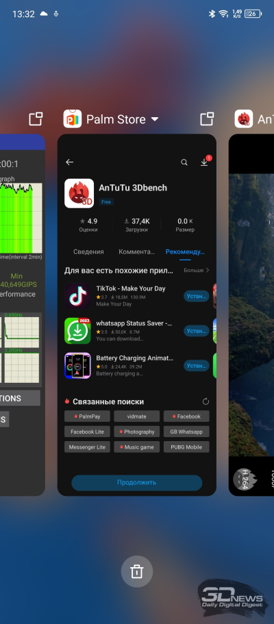 TECNO POVA 5 работает на базе Android 13 с оболочкой HiOS 13. О ней мы уже писали в обзоре TECNO CAMON 20 Premier 5G, где она, по сути, дебютировала. Из отличий от прошлой версии, HiOS 12, отметим новый виджет с календарем на главном экране, слегка подрихтованный интерфейс и установленный по умолчанию (наряду с Google Play) магазин приложений RuStore, но в остальном все хорошо знакомо еще по прошлогодним гаджетам бренда. По-прежнему очень много предустановленного софта, функциональность даже избыточная (пользователям, привыкшим настраивать оболочку под себя, придется поломать голову). Русификация при этом уже в норме, работает все быстро и стабильно, пользоваться смартфоном комфортно.