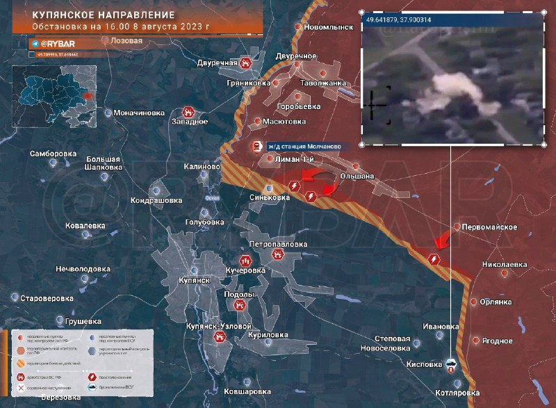 Купянский участок фронта: обстановка по состоянию на 16.00 8 августа 2023 года от Телеграм-канала Рыбарь.