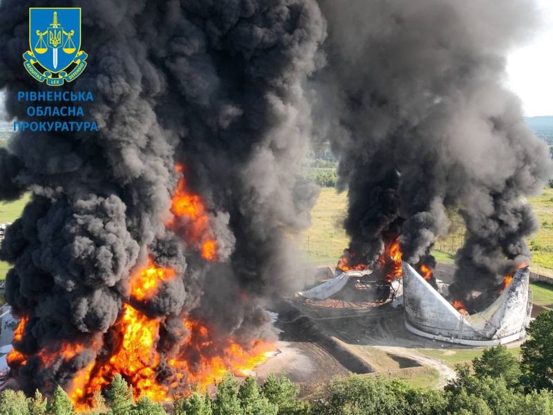 В Ровенской области БПЛА «Герань-2» нанесли удар по нефтебазе под Дубно Ровенской области, в результате чего она была уничтожена