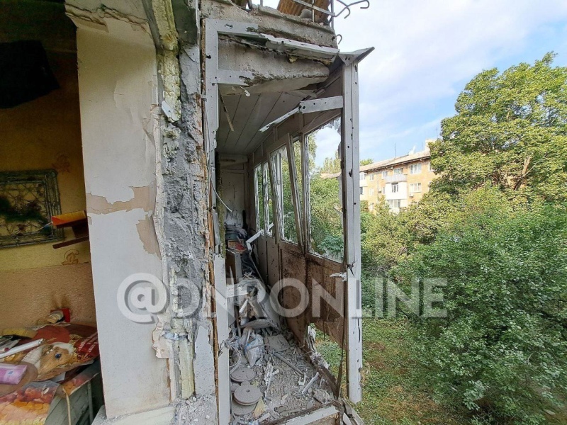 В результате обстрела Донецка снарядами был повреждён частный дом по улице Лепешинского и многоквартирный дом по улице Университетской.