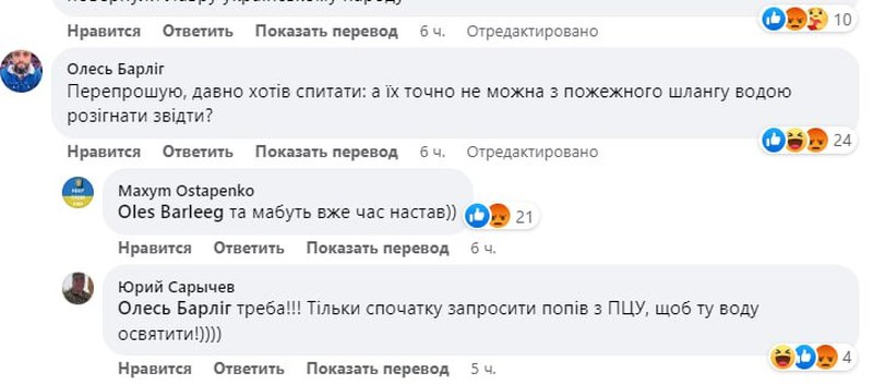 Мало того – исполняющий обязанности директора Национального заповедника Максим Остапенко в комментариях на своей странице в фейсбуке публично заявил о возможности разгона верующих водой из пожарного шланга. В комментариях на своей страничке в Фейсбуке он вроде бы шутя отвечает, что время уже настало.