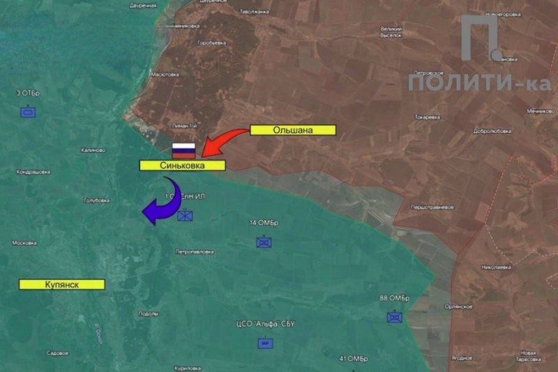 «По нашей информации, проукраинская администрация Купянска уже эвакуировалась. Тем временем наши войска занимают стратегические высоты на левом берегу Оскола — штурмуют Синьковку, Подолы, Куриловку и Ковшаровку на востоке от города.