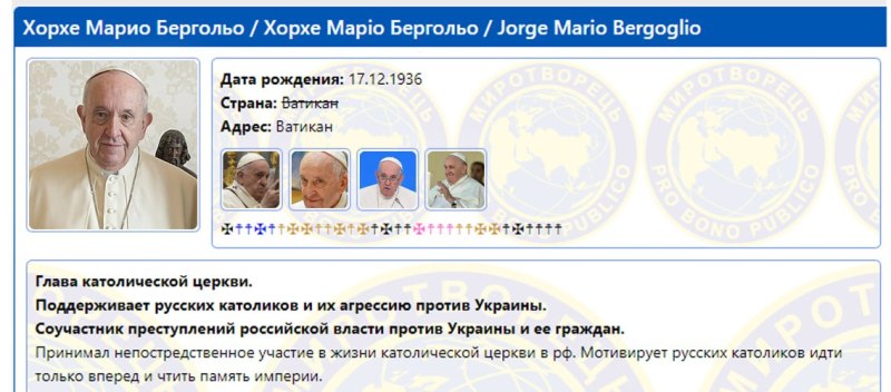 Папу Римского нацисты даже внесли в базу сайта «Миротворец», но после быстро удалили.