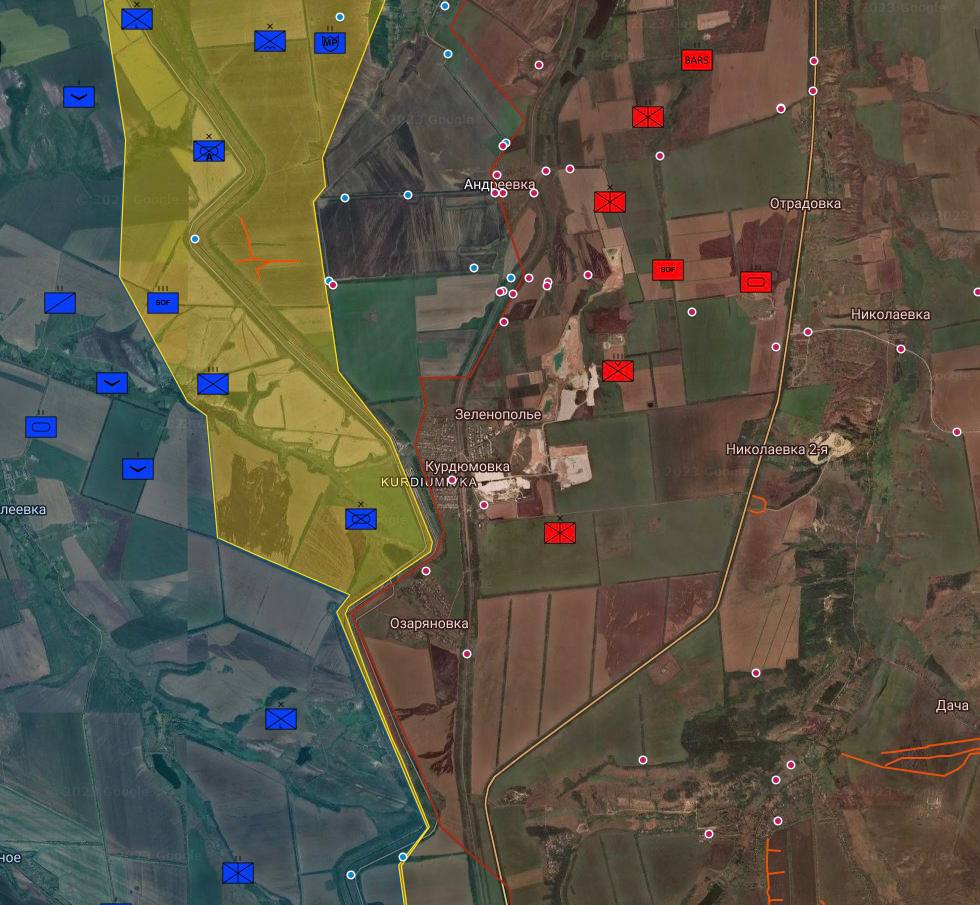 Несмотря на продолжающиеся накаты ВСУ, обстановка стабилизировалась. Как заметили «коллеги по цеху» КирпичиВП, ВС РФ успешно контратаковали в районе КЛЕЩЕЕВКИ, вернув контроль господствующих высот на западе. Линия боевого столкновения сместилась в нашу пользу в районе БЕРХОВКИ и КУРДЮМОВКИ.