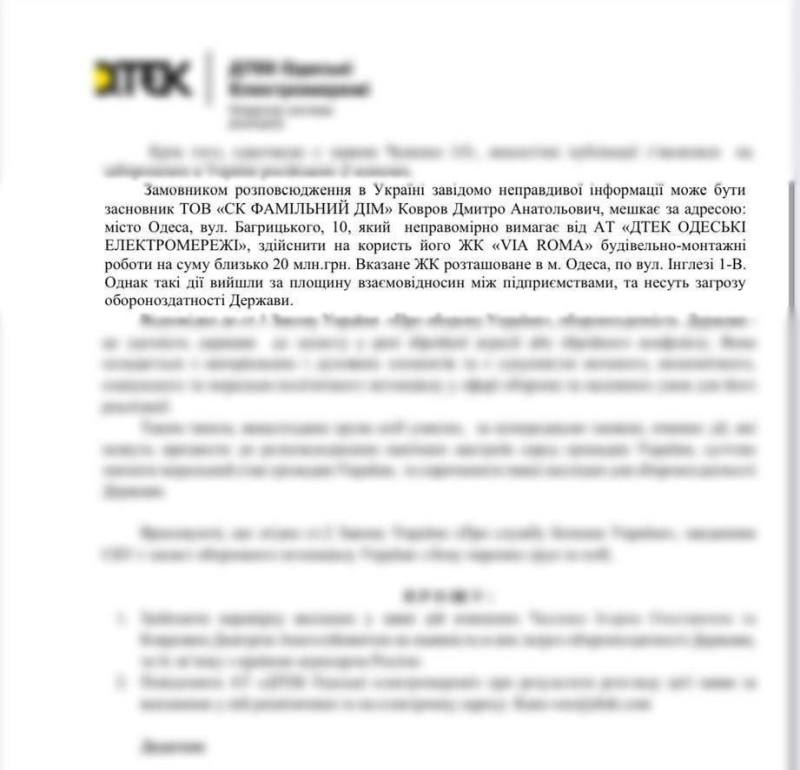 В СБУ заявили о проверке одесского застройщика Дмитрия Коврова из-за «антиукраинской пропаганды и сотрудничества с российскими z-каналами». С соответствующим запросом обратилась ДТЭК «Одесские электросети», а поводом стало якобы участие принадлежащего Коврову одесского застройщика «Фамильный дом» в распространении «российских нарративов о срыве отопительного сезона в Одессе». Мол, такую же «антиукраинскую пропаганду» распространяли и «так называемые z-каналы на оккупированных Россией территориях». Собственно, больше никакой аргументации в отношении Коврова нет: обвинение в антиукраинской пропаганде совместно с «российскими нарративами» вполне себе годное для того, чтобы упомянутому застройщику создать максимум проблем, включая его арест.