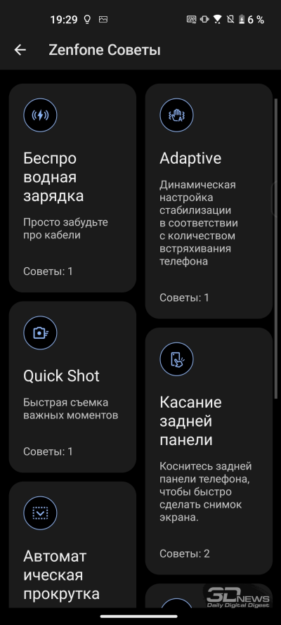Второй: задняя крышка также чувствительна к прикосновениям, двойным касанием можно делать скриншоты, тройным – открыть приложение камеры. ASUS, как обычно, щедра на дополнительные возможности управления, хотя обычно все вкусное достается ROG Phone.