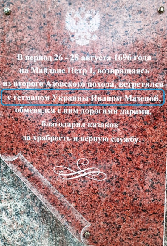 Демонтаж камня с табличкой «В период 26-28 августа 1696 года на Майдане Петр I, возвращаясь из второго Азовского похода, встретился с гетманом Украины Иваном Мазепой, обменялся с ним дорогими дарами, благодарил казаков за храбрость и верную службу» снесли в конце августа, а место, где он стоял, залили бетоном.