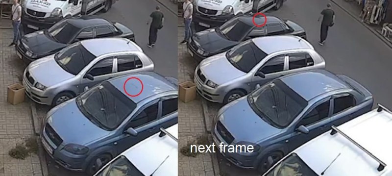 На крышах синей и чёрной машин в отражении также видно, откуда летит ракета.