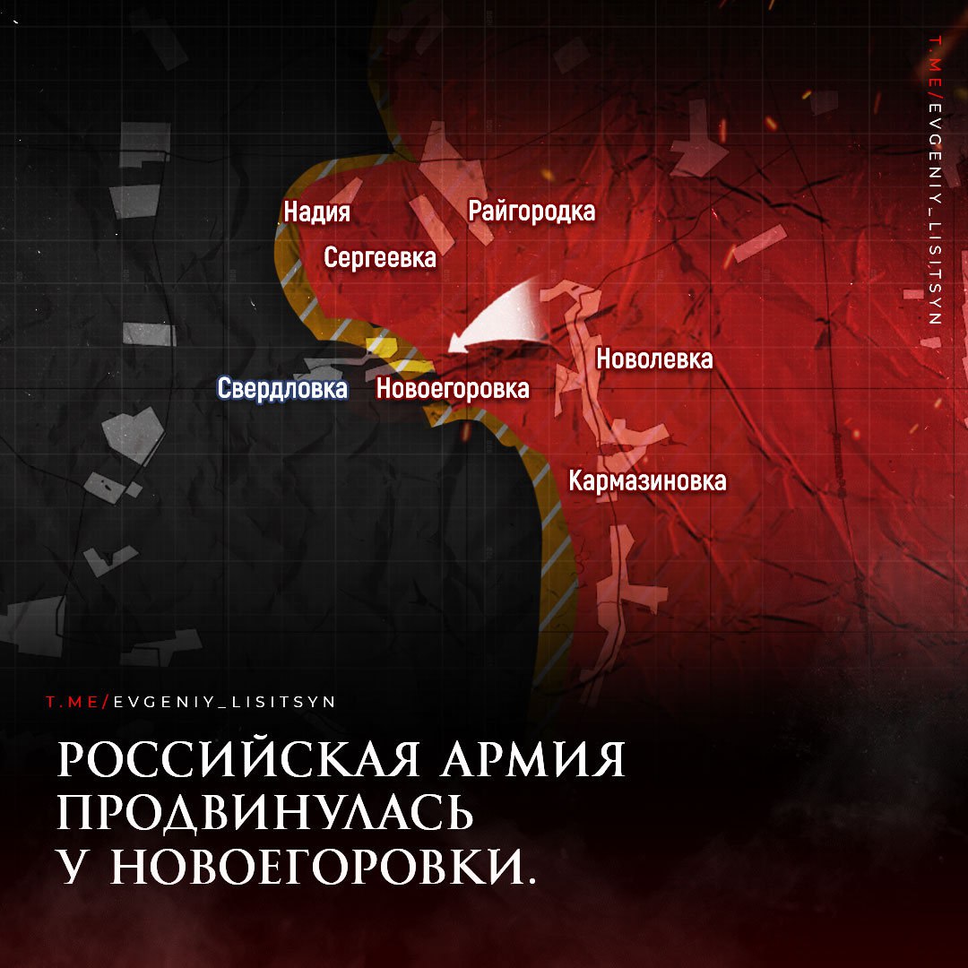 На КУПЯНСКОМ НАПРАВЛЕНИИ ВС РФ продвинулись примерно на километр в районе НОВОЕГОРОВКИ и на данный момент закрепляются на позициях. Российские войска продолжают штурм на линии СИНЬКОВКА – ПЕТРОПАВЛОВКА, а также продвигаются у КАРМАЗИНОВКИ.