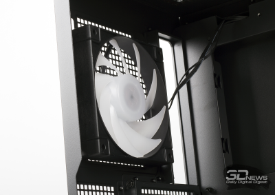 - Все комплектные вентиляторы оснащены ARGB-подсветкой. Ей можно управлять как при помощи кнопки на корпусе, так и после подключения хаба к материнской плате.