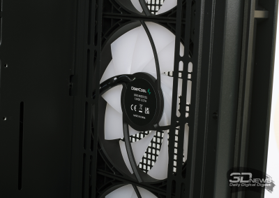 - В комплекте идут три 120-мм вентилятора DeepCool FK120. Лопасти выполнены из высокопрочного полибутилентерефталата (PBT). По данным производителя, крыльчатки разработаны специально для радиаторов систем жидкостного охлаждения — частота их вращения регулируется в диапазоне от 500 до 2250 об/мин. В конструкции применен гидродинамический подшипник с ресурсом не менее 50 000 часов.