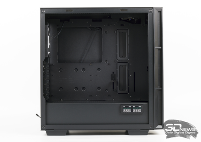 - Корпус просторный: максимальная допустимая длина устанавливаемой видеокарты составляет 380 мм, допустимая высота процессорного кулера — 175 мм, допустимая длина блока питания — 170 мм. Поддерживаются платы любых форм-факторов, включая E-ATX.