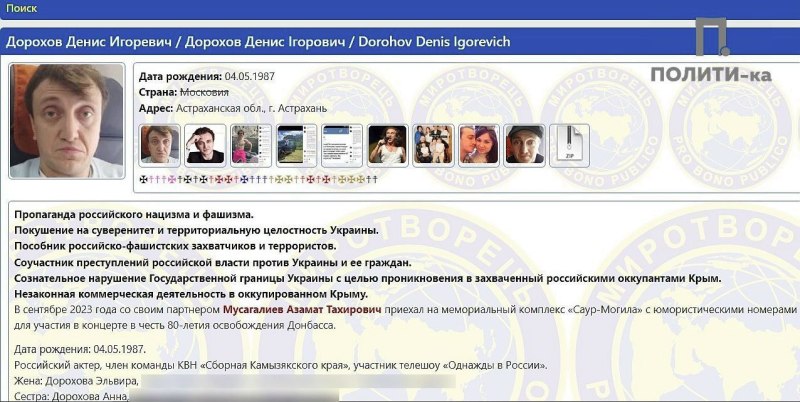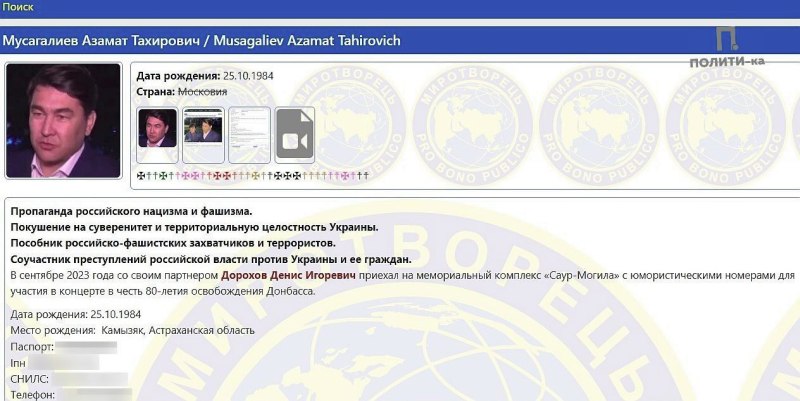 На Украине юмориста Азамата Мусагалиева внесли в базу сайта «Миротворец». Денис Дорохов в ней с 2019 года.