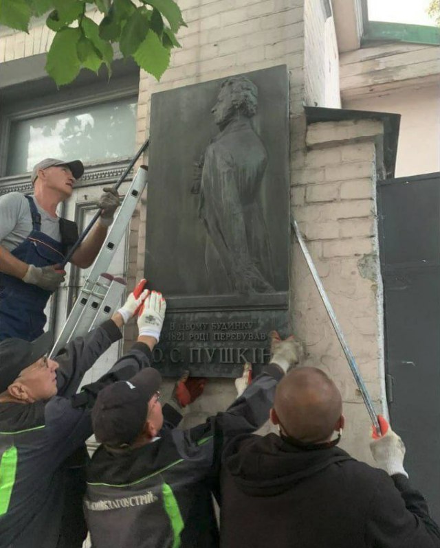 На выходных в Киеве демонтировали мемориальную доску поэту Александру Сергеевичу Пушкину, продолжая начавшуюся летом вакханалию по сносу любых изображений автора «Бородино» и «Капитанской дочки». Памятная доска была установлена на доме, в котором поэт останавливался в 1821 году. Что ж, такие памятные знаки Киеву не нужны. Теперь будут таблички, рассказывающие, где кушал Блинкен, потерялся Байден и ходил в туалет Джонсон.