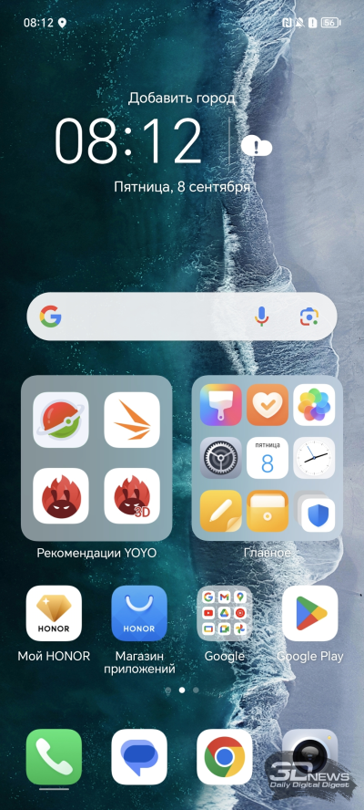 Оболочка опрятная, быстрая, с модными большими папками и без какой-либо странной специфики. Предустановленных приложений немало, но не могу сказать, что здесь откровенный перебор (как у соседей из HUAWEI, например). К тому же их можно удалить, если они вам мешают. Ну и да, Google-сервисы на месте, эта беда окончательно миновала HONOR.
