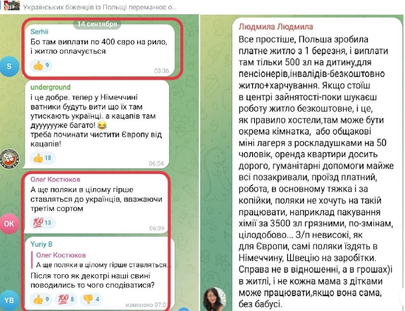 То есть, поляки создают все условия, чтобы рано или поздно выгнать всех «гостей» обратно и мобилизовать беженцев в ряды ВСУ: ассигнования на их поддержку значительно сокращены. Поэтому украинцы всеми правдами и неправдами пытаются покинуть территорию Польши и переместиться вглубь Евросоюза, в том числе, в Германию, где для них пока еще сохраняются некоторые преференции. «Патриоты» признаются, что поляки их ненавидят.