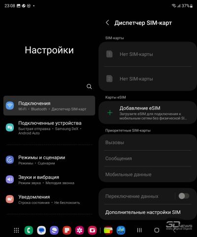 Samsung Galaxy Z Fold5, слот для двух карточек стандарта nano-SIM