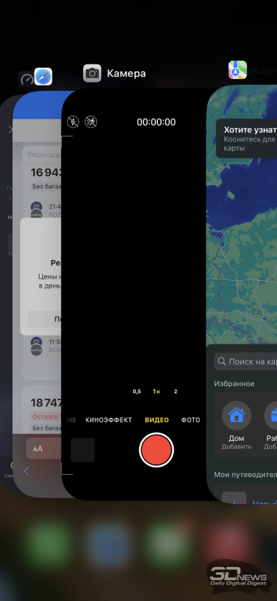 Функциональность «Острова» та же, что и у iPhone Pro прошлого поколения. Он показывает системные оповещения, такие как аутентификация Face ID или подключение наушников по Bluetooth, а также выводит другую полезную информацию вроде воспроизводимой в данный момент музыки или данных о поездке в Uber. Это оживляет ту часть смартфона, которую обычно люди просто игнорируют. С другой стороны, Apple позиционирует «Остров» как пространство для управления функциями смартфона — и поначалу ты даже активно этим пользуешься, но со временем возвращаешься к привычной панели управления.