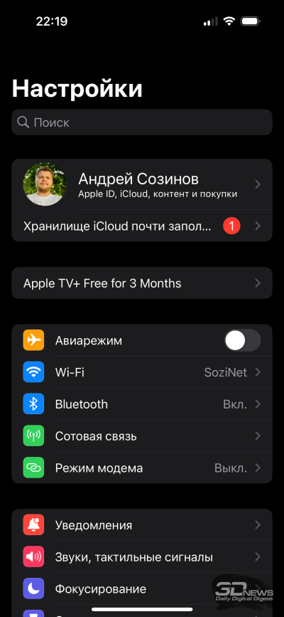 Фронтальная камера та же, что и у прошлогодних iPhone — 12 Мп, ƒ/1,9, фазовый автофокус. Её дополняет датчик глубины для помощи в размытии фона на селфи. Есть возможность выбора угла съемки — можно фотографировать как с максимальным углом обзора (используется вся поверхность сенсора, 12 Мп), так и с зауженным (примерно 7 Мп), есть ночной режим. В целом селфи-камера со своими задачами справляется весьма неплохо, хотя эффекты студийного освещения иногда выглядят несколько странно.