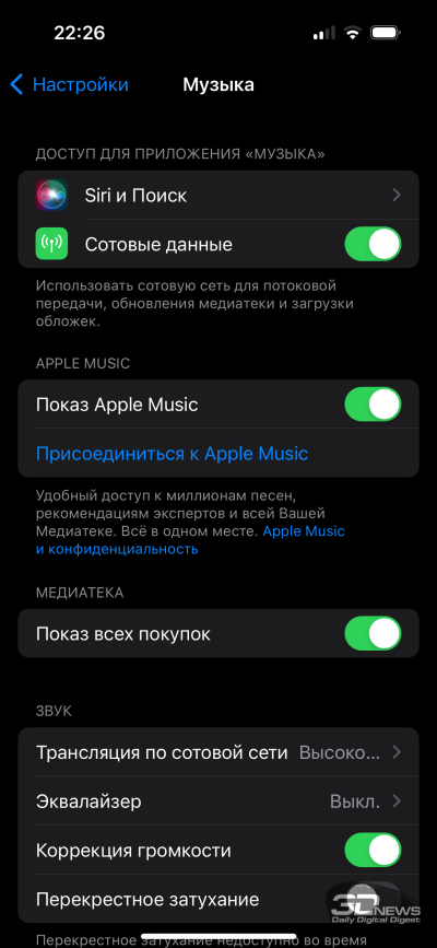По звуку iPhone 15 ничем не удивляет, но и не огорчает. Смартфон поддерживает проводные наушники с USB Type-C, которых на рынке представлено пусть и не огромное количество, но всё же побольше, чем с Lightning. Apple, к слову, и сама выпустила новую версию EarPods с новым разъемом. Для беспроводных Bluetooth-наушников предлагается использовать кодек AAC, а вот поддержки aptX или LDAC снова не появилось. Имеются и стереодинамики: как и у многих других смартфонов, вместе с расположенным на нижней грани внешним динамиком звук воспроизводит разговорный. Звучит iPhone 15 довольно громко, но на максимальной громкости отчётливо слышны шумы на фоне. Других проблем по качеству я не заметил.