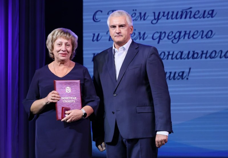 Крымских учителей награждали и говорили теплые слова. «Тенденции нашего века – борьба за умы, борьба за позиции, и победить в такой борьбе могут нам помочь только педагоги», - заявил с театральной сцены Сергей Аксёнов.