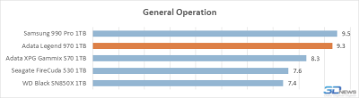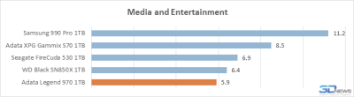 Кроме того, если посмотреть на производительность Legend 970 в отдельных сценариях, то можно увидеть, что в действительности этот накопитель определённо годится для игровых систем и в большинстве случаев показывает более высокое, чем соперники, быстродействие.