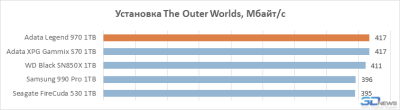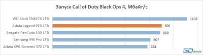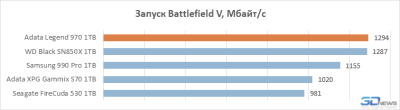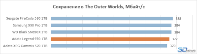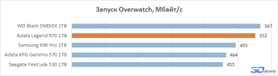 По игровой производительности Adata Legend 970 близок к прошлому лидеру — WD Black SN850X, хоть и использует более скоростную шину. С другой стороны, все остальные SSD прошлого поколения заметно отстают от новинки.