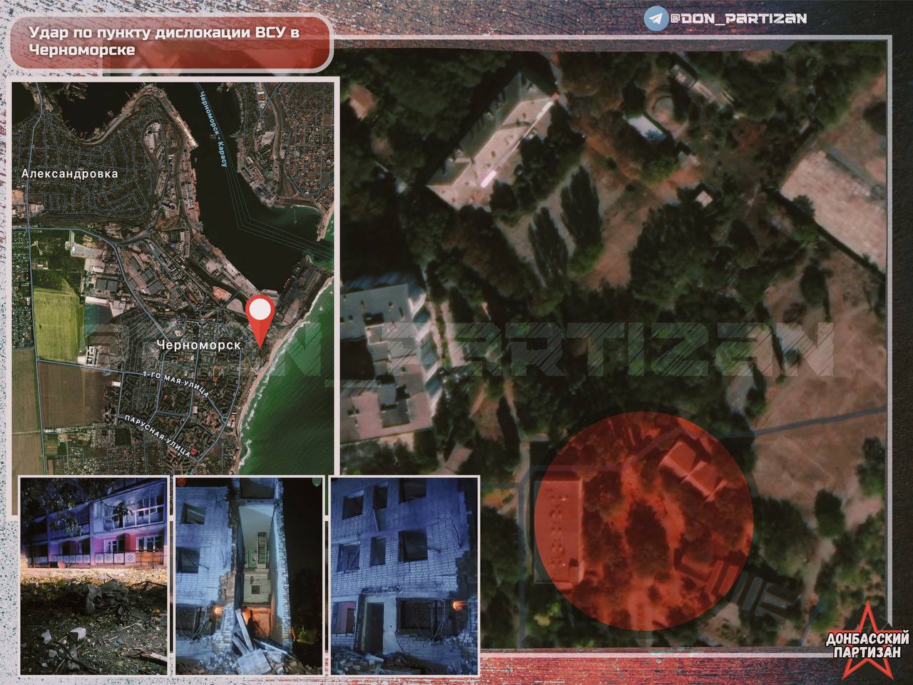 Об ударе по пункту дислокации ВСУ в Черноморске пишет Телеграм-канал Донбасский Партизан.