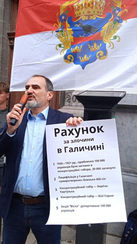 «Польша должна понимать, что помощь, которую она оказывает Украине, это на самом деле «возврат долга», за преступления прошлого. За нарушение международного обязательства по созданию автономии в Восточной Галичине. За репрессии против населения, которые ещё вчера имели европейское гражданство. За пацификации в Галичине. За концентрационные лагеря. За операцию "Висла"», — заявили участники акции.