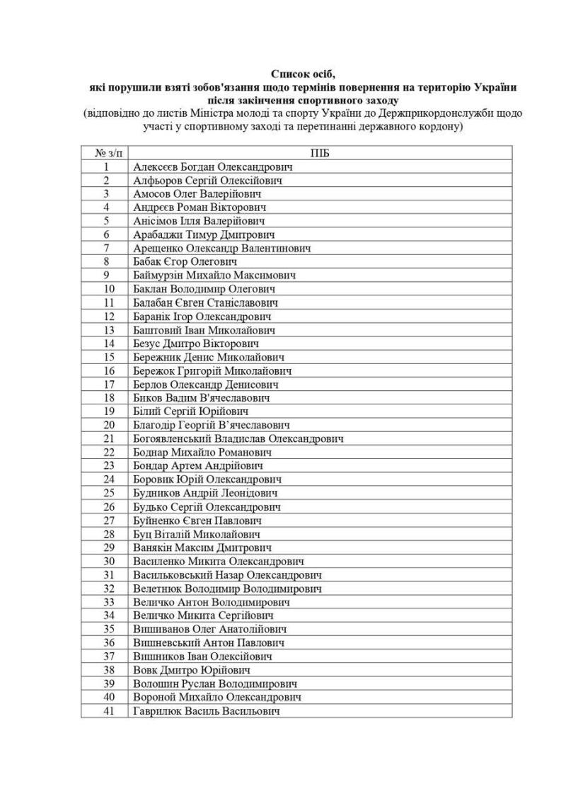 В мае текущего года министерство спорта опубликовало список из 236 спортсменов, которые не вернулись из-за границы. Разрешение на выезд им было выдано на время проведения спортивных мероприятий, но вовремя на Украину они не вернулись.