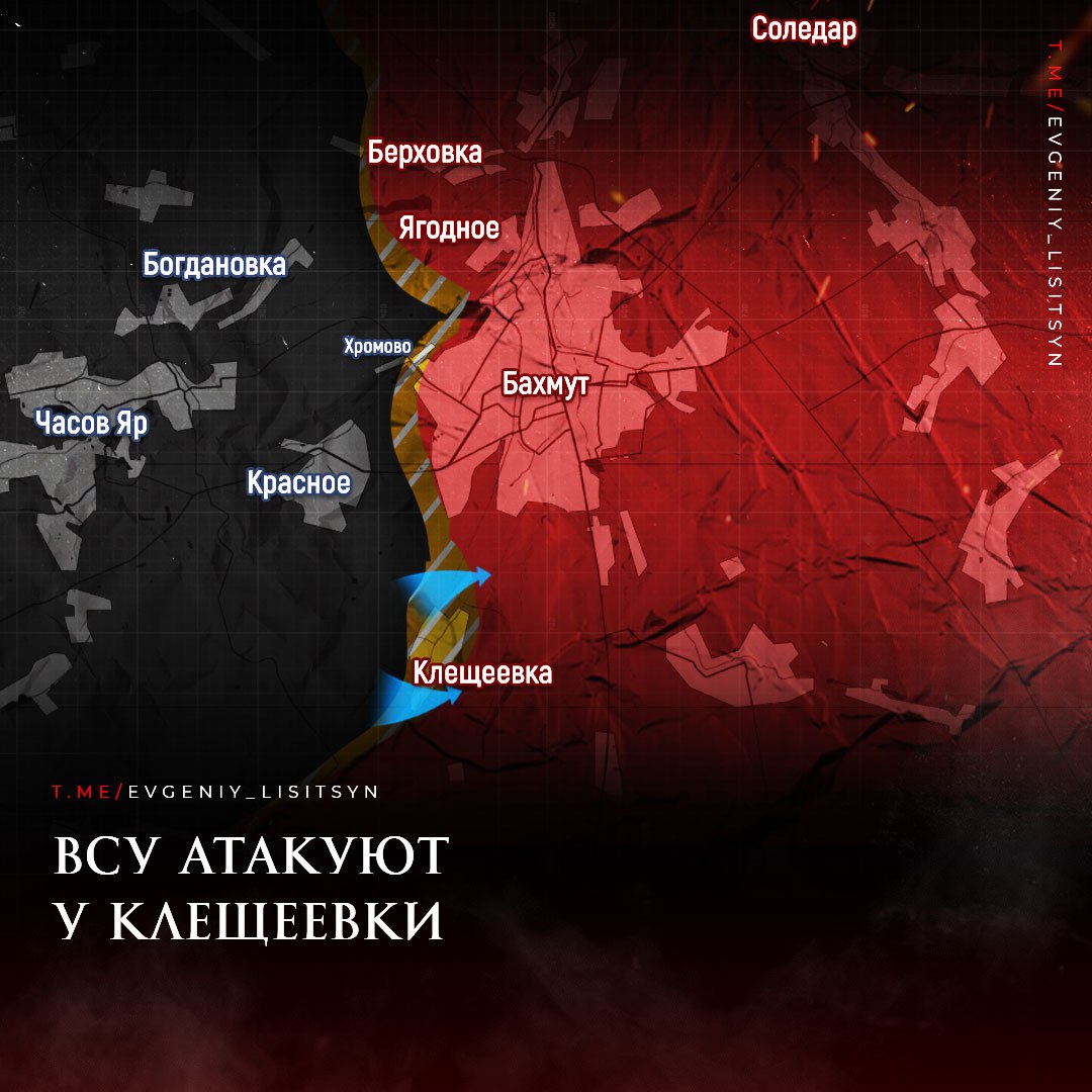 На АРТЁМОВСКОМ НАПРАВЛЕНИИ идут ожесточённые бои у АНДРЕЕВКИ и КЛЕЩЕЕВКИ. ВСУ продолжают попытки зайти за железнодорожную линию.