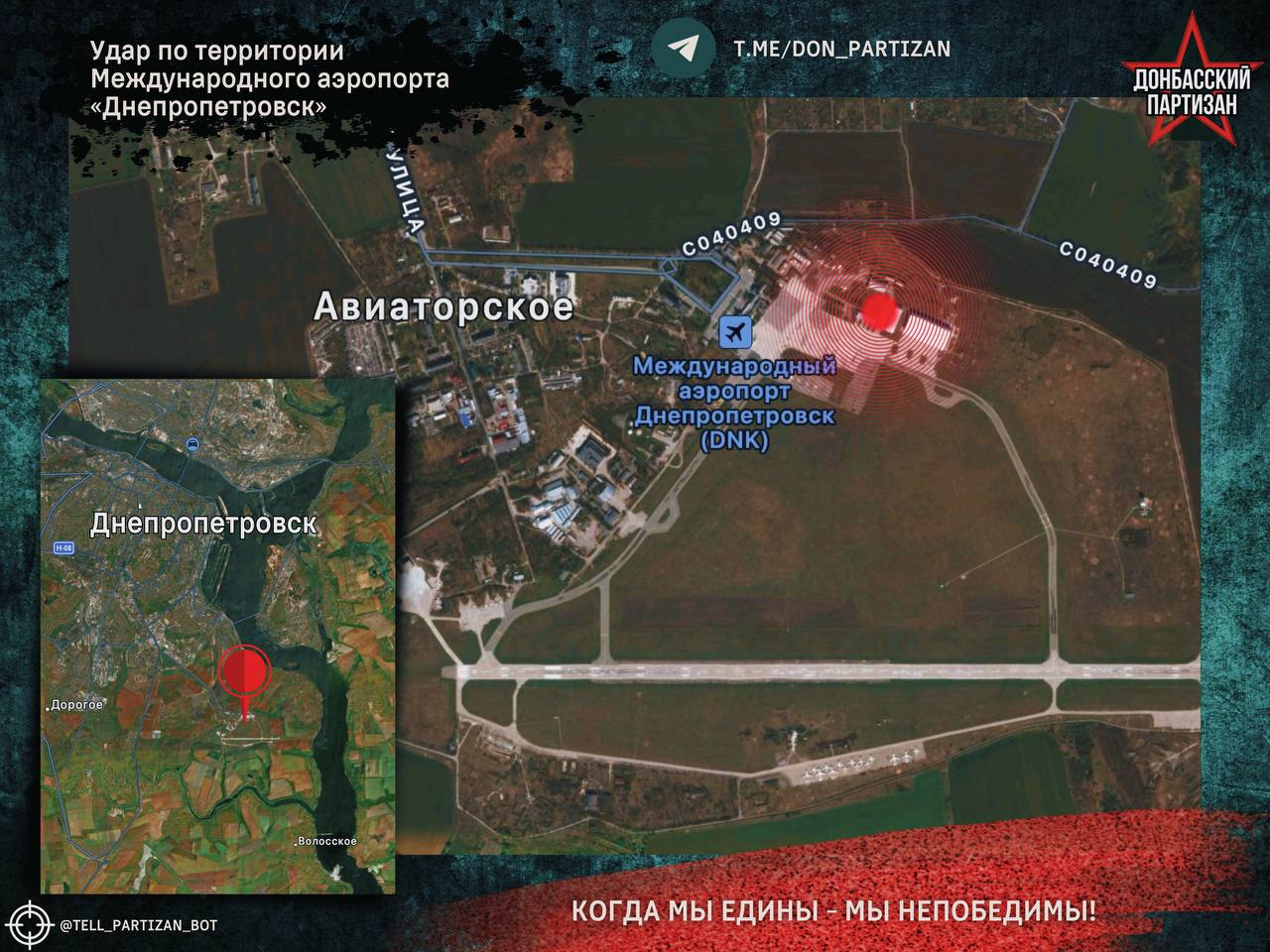 Сегодня ночью ВС РФ совершена комплексная атака по тыловым объектам противника лётной инфраструктуры. Одним из поражённых объектов стал Международный аэропорт «Днепропетровск», – пишет Телеграм-канал Донбасский Партизан.