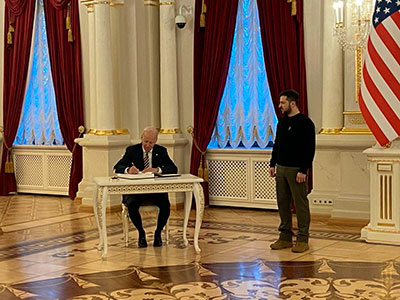 Но украинского мистера президента такое тёмное прошлое совершенно не беспокоит. Он с удовольствием встречает в этом дворце своих хозяев, к примеру, Байдена или, скажем, Столтенберга. Устраивает им в этом здании торжественные приёмы, кадры которых потом облетают весь мир. Ведь это церемониальная резиденция президента Украины!
